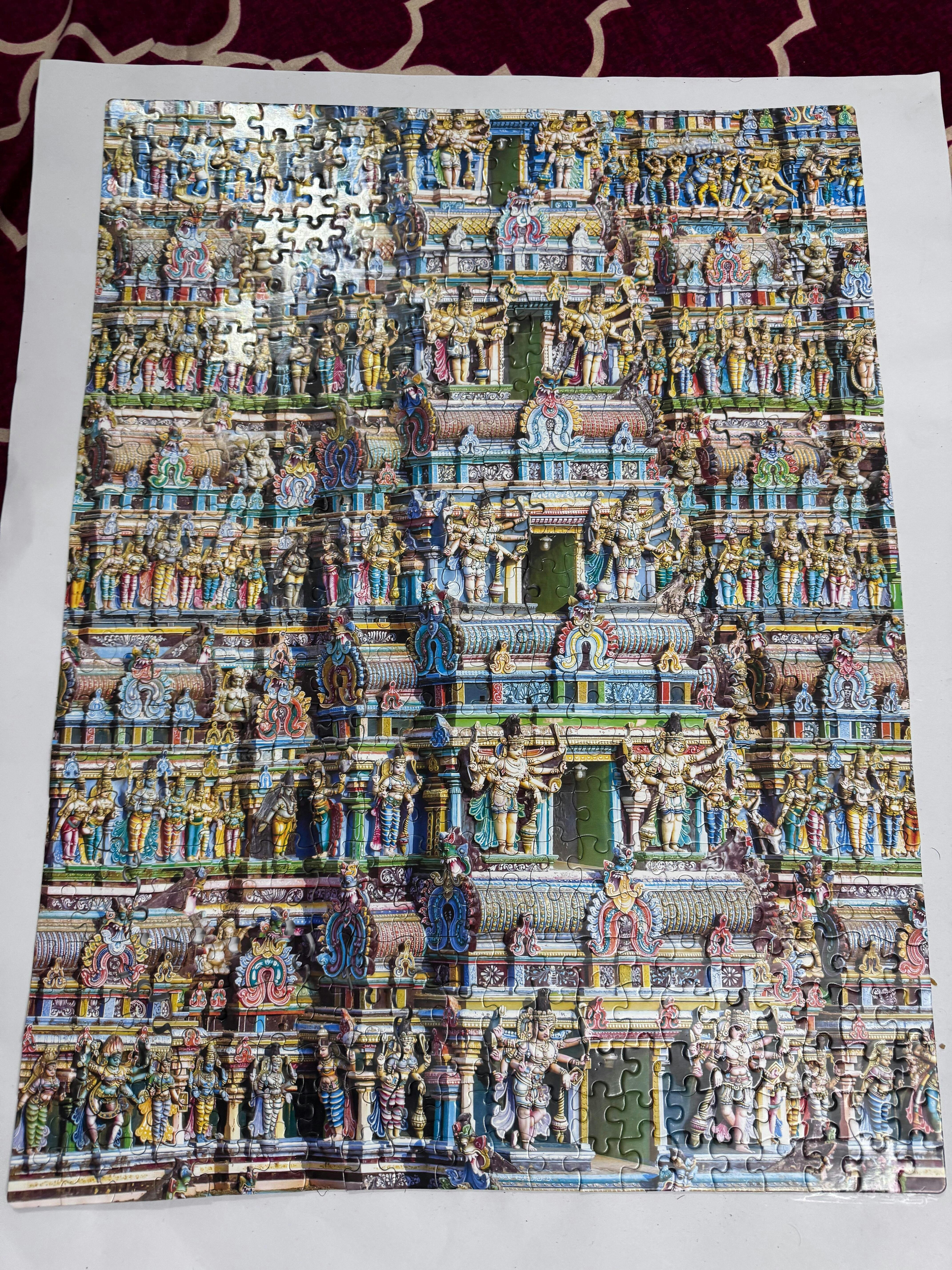 Now these magnificent Gopuram of Indian temple structures are available in the form of 500 piece jigsaw puzzles. Have fun finding the missing pieces while exploring the splendid Indian temple architecture and the mythological stories.